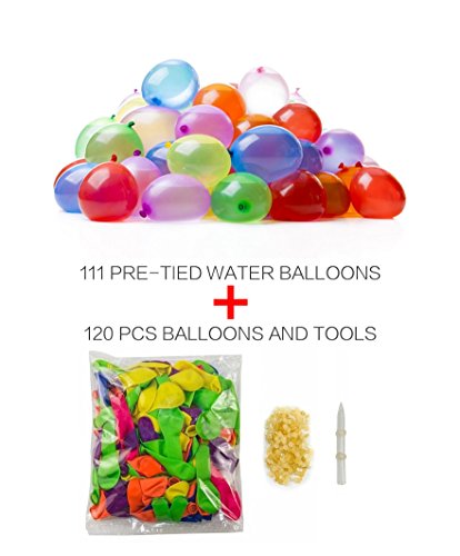 - 111pcs Pre-tied Water Balloons with 1pcs Supplementary package (120pcs Balloons and 120pcs rubber band with 1pcs tools) Re-arm yourself with this reusable kit: Now you can quickly refill your Water Balloons used straws in a snap with this convenient refill kit. Charge up your balloon barrage again and again and keep the fun comin !