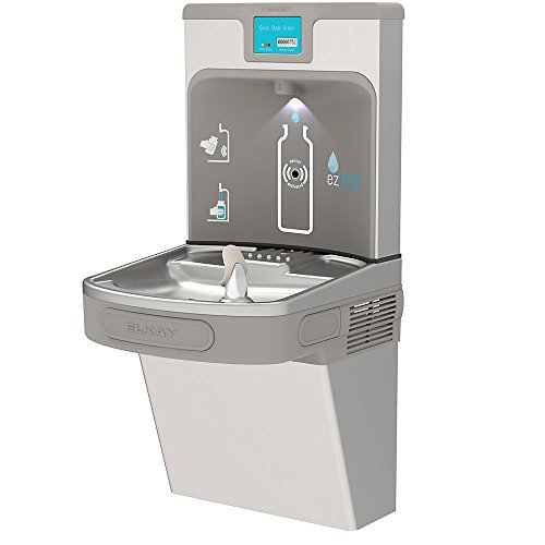 ELKAY EZH2O Next Generation Drinking Fountain with Bottle Filling Station saves more energy and requires less maintenance when compared to previous models. Compact ADA-compliant water fountain includes a combination filter status monitor and green ticker that counts bottles saved from landfills. Refrigeration unit for bottle filler can be programmed to shut down during periods of non-use. Drinking fountain features a diagnostic program that monitors unit and displays alerts if malfunction is detected. A low-energy LED panel surrounds filter status monitor to improve visibility when filling dark bottles or to illuminate dark corridors. Bottle filling station features a touch-free electronic sensor to prevent the spread of germs or bacteria. 30-second timer conserves water and discourages overfilling. Front and side pushbar activates water fountain. Corrosion-resistant stainless steel basin includes an integrated drain and anti-microbial Flexi-Guard safety bubbler to discourage mold or m
