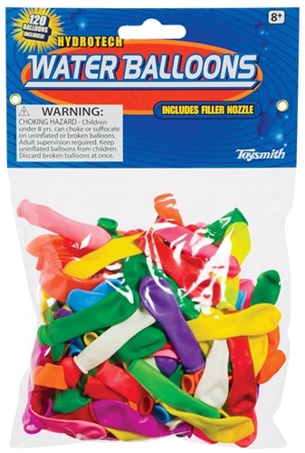 Make a splash with these classic water balloons. With 120 balloons, you will be well prepared to launch a successful and wet campaign against your heated foes. For ages 5 and up. These balloons are the perfect size for refill ammo for the Aqua Launch Water Balloon Slingshot or as hand grenades for your next water fight. Comes with a nozzle attachment for easy refilling.